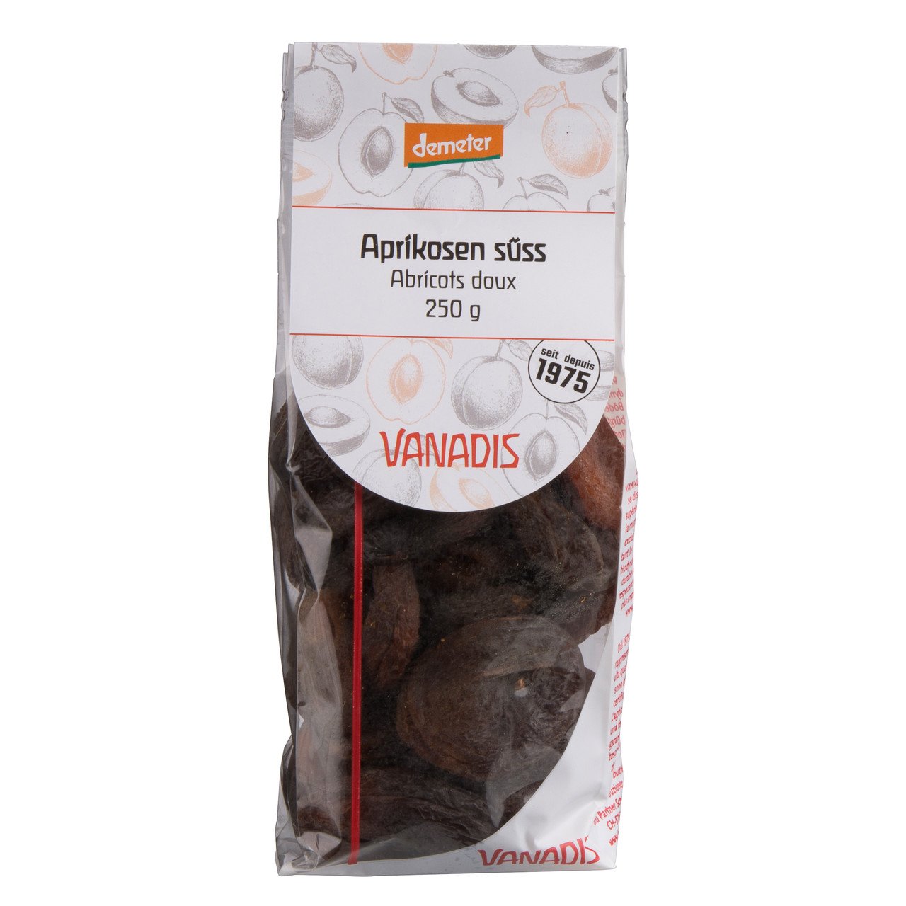 Apricots doux*** séché. Légende: * Biologique, ** Bourgeon, *** Demeter