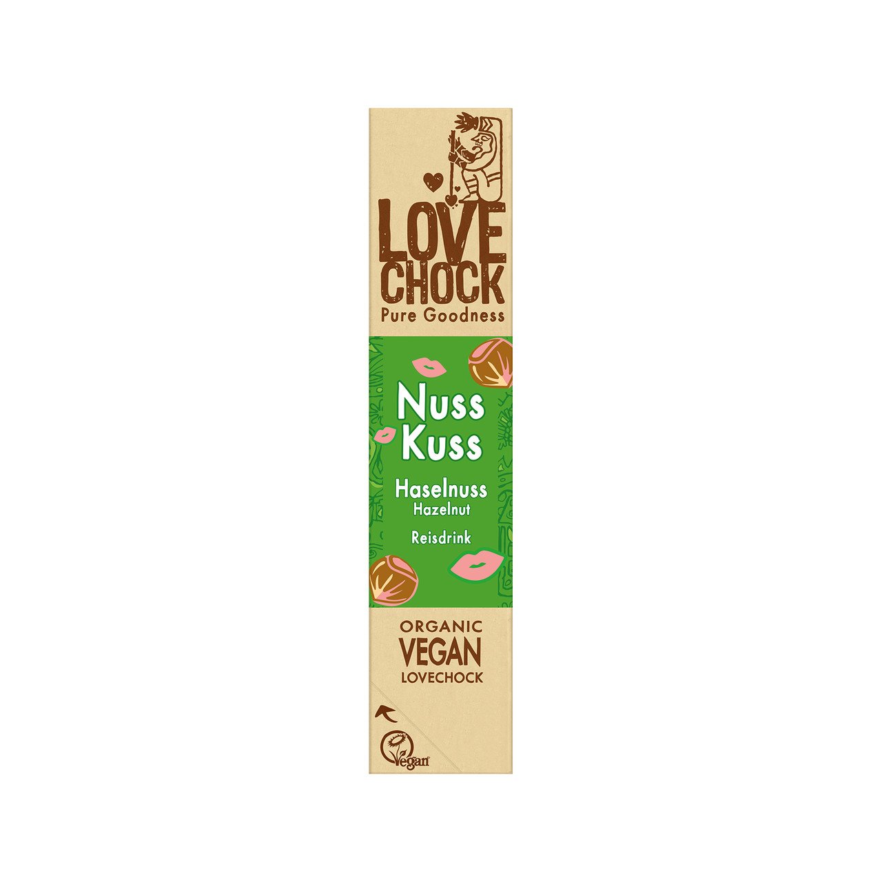 Doux et délicieux, Nuss Kuss n’est pas un chocolat au lait ordinaire : un goût crémeux et légèrement noisette dans notre chocolat doux, semblable à du lait. Chocolat 100% bio et végétalien, cacao premium, noisettes et boisson de riz. Tous les produits sont fabriqués à partir d’ingrédients naturels et édulcorés avec du sucre de fleur de coco. Nos emballages sont compostables à domicile depuis 2011 – Pure Goodness pour l’homme et la planète.