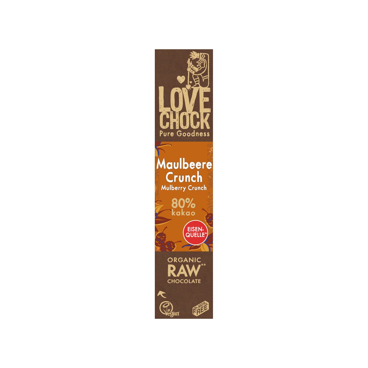 Pâte de cacao crue*, beurre de cacao*, mûres séchées* 21%, sucre de fleur de coco*, morceaux de dattes séchées* 5%, poudre de boisson de riz* (riz*, huile de tournesol*, bêta-glucane*, sel), vanille en poudre*. Cacao: 80% minimum dans le chocolat. Légende: * Biologique, ** Bourgeon, *** Demeter