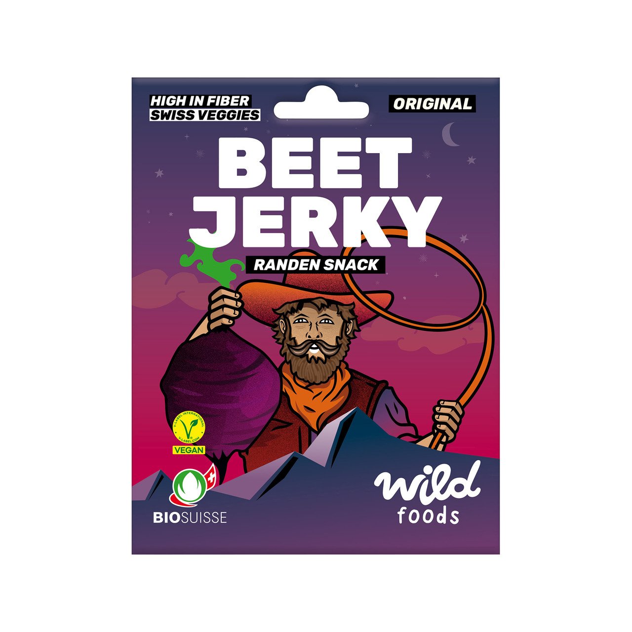 Le « Jerky de betterave » à base de betteraves bio suisses séduit par une marinade intense et un arôme épicé et fumé. Le snack idéal pour toutes les aventures.