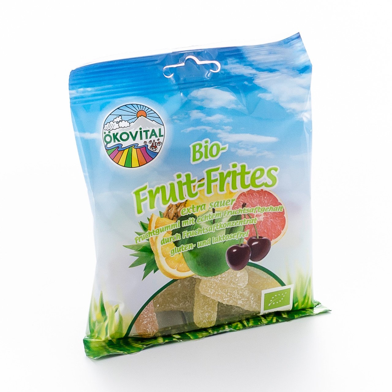 Gommes aux fruits bio multicolores et acidulées, avec gélatine, sans lactose ni gluten
