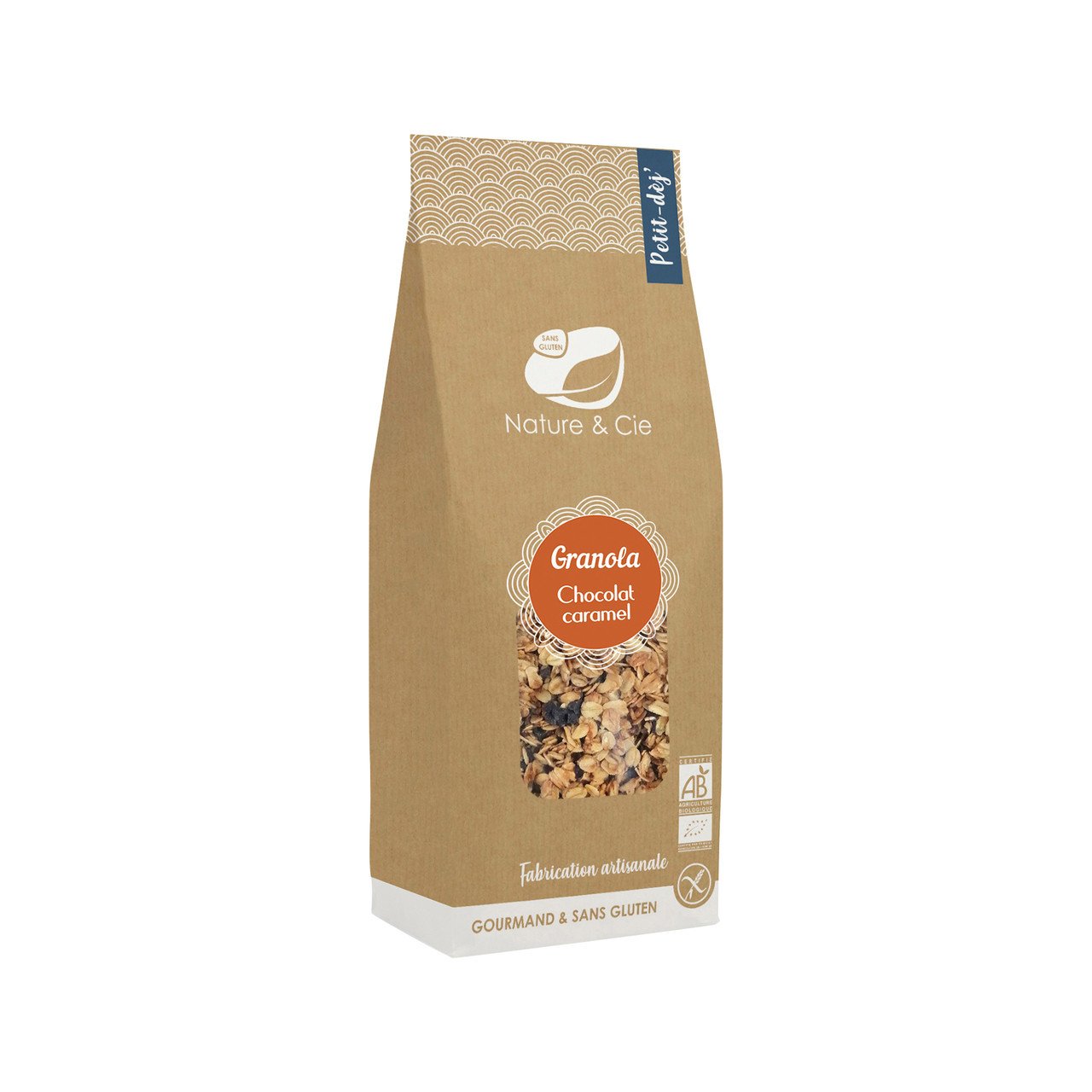 Flocons d’avoine*, sirop d’agave*, huile de noix de coco vierge commerce équitable*, pépites de chocolat noir commerce équitable* 7% (sucre de canne*, pâte de cacao de la République dominicaine*, beurre de cacao*), pépites de caramel au BEURRE salé* 7% (sucre*, sirop de glucose*, SAUC*, BEURRE*, eau, sel de Guérande), arôme naturel de caramel* 0.9%, sel*. Légende : * Biologique, ** Bourgeon, *** Demeter