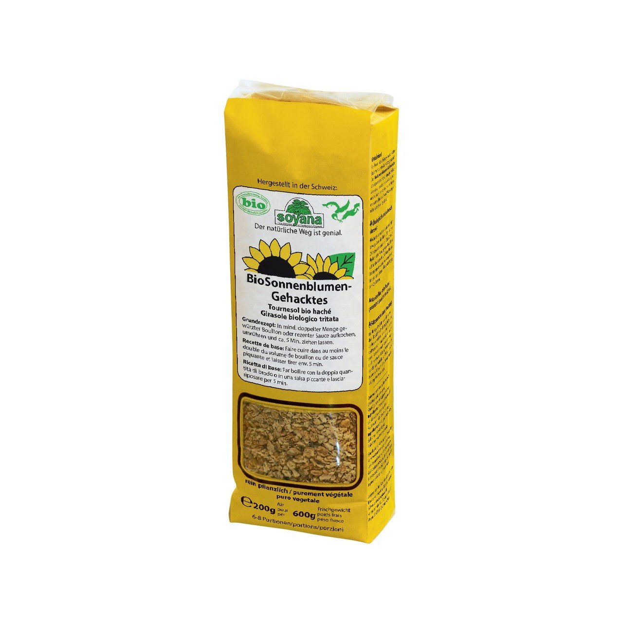 Haché de tournesol à base de graines de tournesol dégraissées et texturées pour sauce bolognaise, gratins, burgers, lasagne, pain de viande ou desséché dans le muesli.