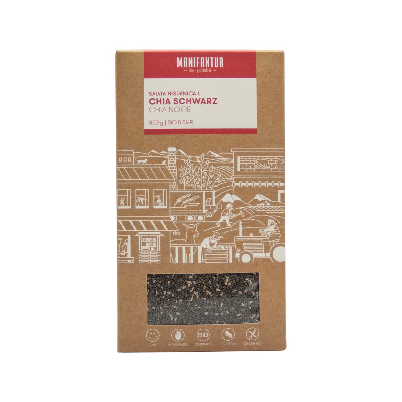 Graines de Chia noire (Salvia hispánica L.)*. Légende: * Biologique, ** Bourgeon, *** Demeter