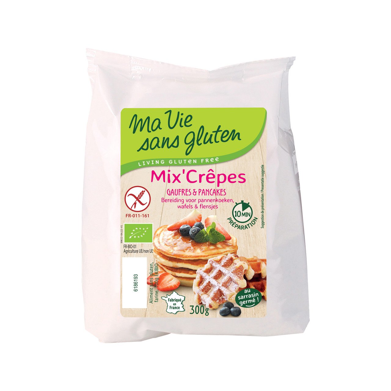 Farine de riz demi complet*, fécule de manioc*, farine de sarrasin germé* 11.3%, sucre de canne blond*, farine de souchet*, poudre à lever* (fécule de pomme de terre*, tartrates de potassium, bicarbonate de sodium), gomme d’acacia*. Légende: * Biologique, ** Bourgeon, *** Demeter