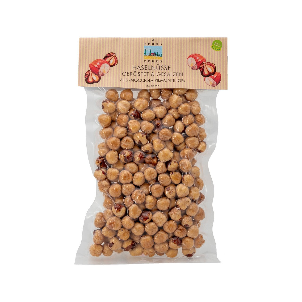 Noisettes biologiques grillées et salées de la variété « Tonda Gentile Trilobata » de la région des Langhe dans le Piémont, Italie. Ces noisettes piémontaises de la région d’Alta Langa ont un goût unique, riche et noiseté, ainsi qu’un merveilleux arôme de torréfaction. La région montagneuse de l’Alta Langa produit des noisettes de première qualité et la variété « Tonda Gentile Trilobata » est considérée comme l’une des meilleures au monde. Croquantes et incroyablement savoureuses à l’apéritif, comme en-cas ou en topping sur des salades et divers plats.